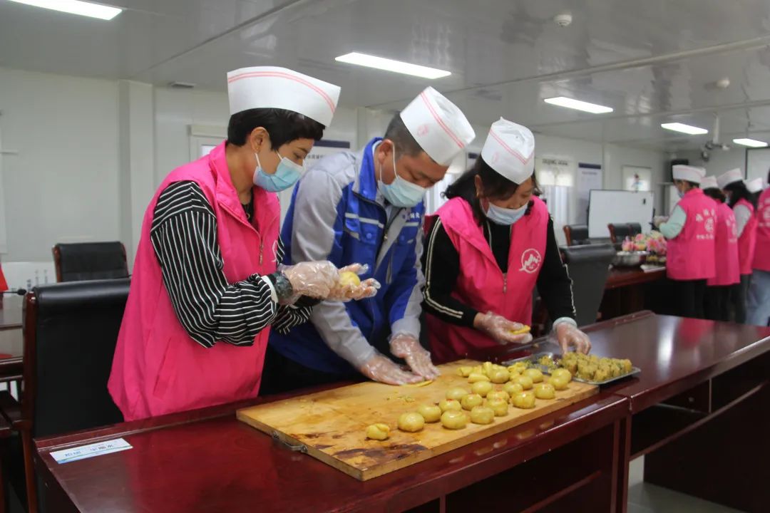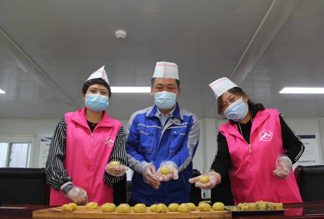 擀皮、包馅、印花……香甜的气味弥漫在空气中,冬奥小镇张山营西大庄科村安置房项目部里一片温馨情景。