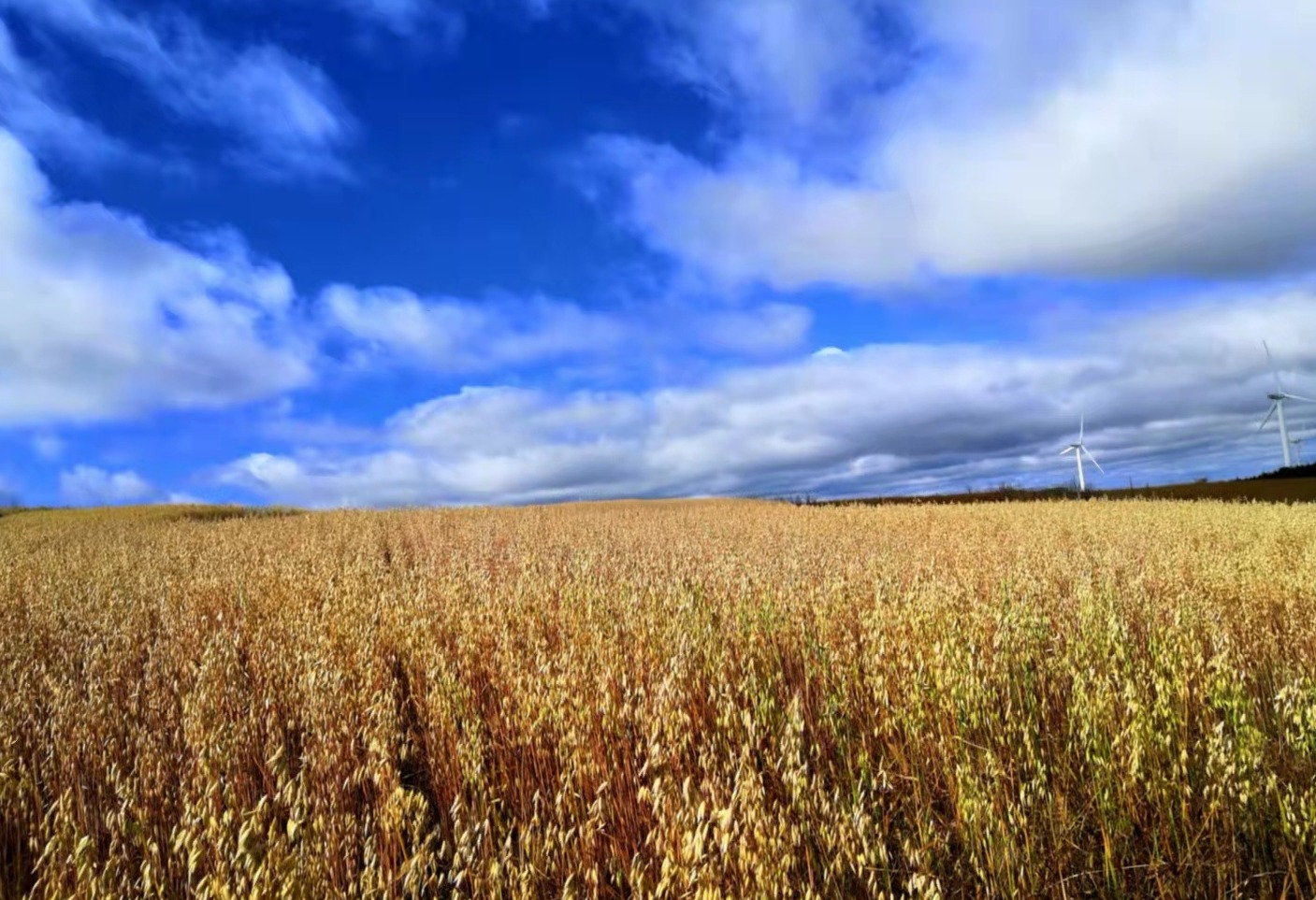 金黄的莜麦与蓝天白云相呼应 杜永库摄