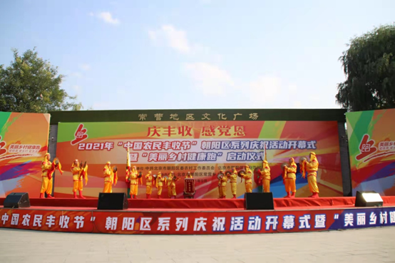 9月23日恰逢秋分,也是我国第四个“农民丰收节”。当天常营公园文化广场笙歌鼎沸、气氛热烈,“中国农民丰收节”朝阳区系列庆祝活动开幕式暨“美丽乡村健康跑”在这里举行,来自朝阳区孙河、崔各庄、金盏、东坝、平房、南磨房等6个乡的花会队伍,在现场上演了“花会快闪”,参与人员进行了全程5公里健康跑,共同庆祝中国丰收节。