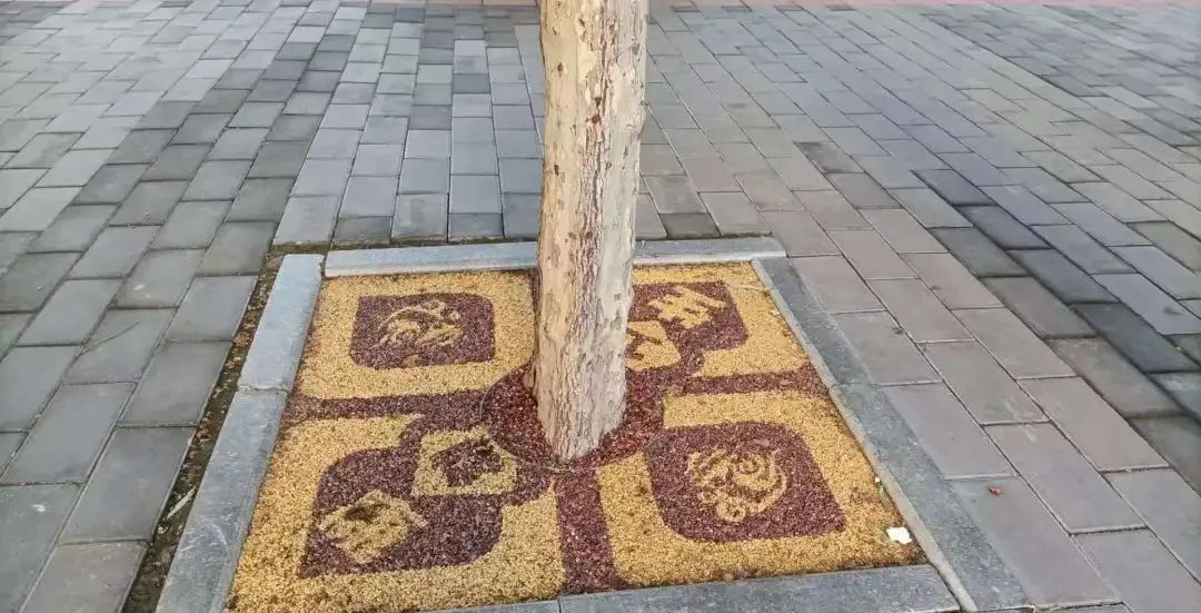 平面改造:以小石子铺设手工树坑画,整体设计元素既有相互统一的“三农”(农业部、农展馆、农南社区)特点又有各自不同的如社区logo、文明养犬、敬老助残等主题。