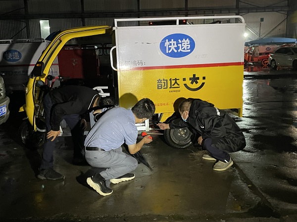 在村内快递车集中停放处,记者看到,快递人员正在将电动车电池放入充电柜进行集中充电。由于快递车辆充电频率较高,检查人员要求相关负责人要提高消防安全意识,认真落实安全防范措施,确保快递车辆充电统一、安全管理。