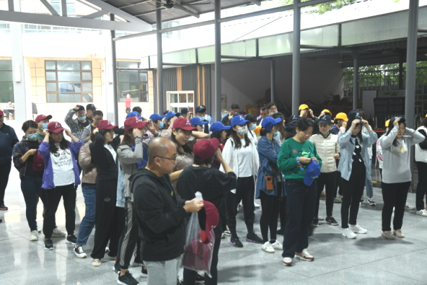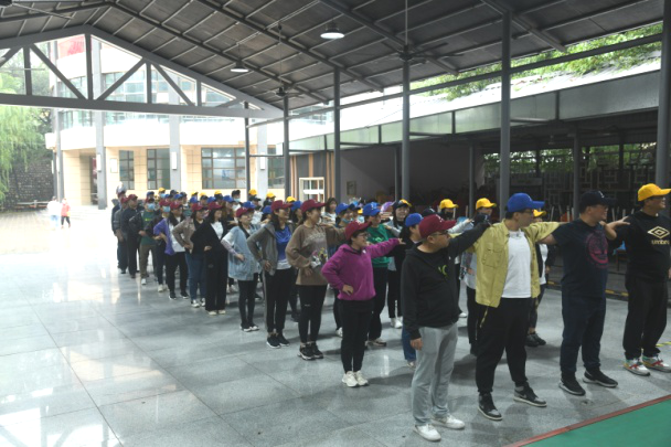 全体社工分为四队,自主推选的队长领取队旗,并为大家分发队帽。滴!一声哨鸣拉开了活动的序幕。