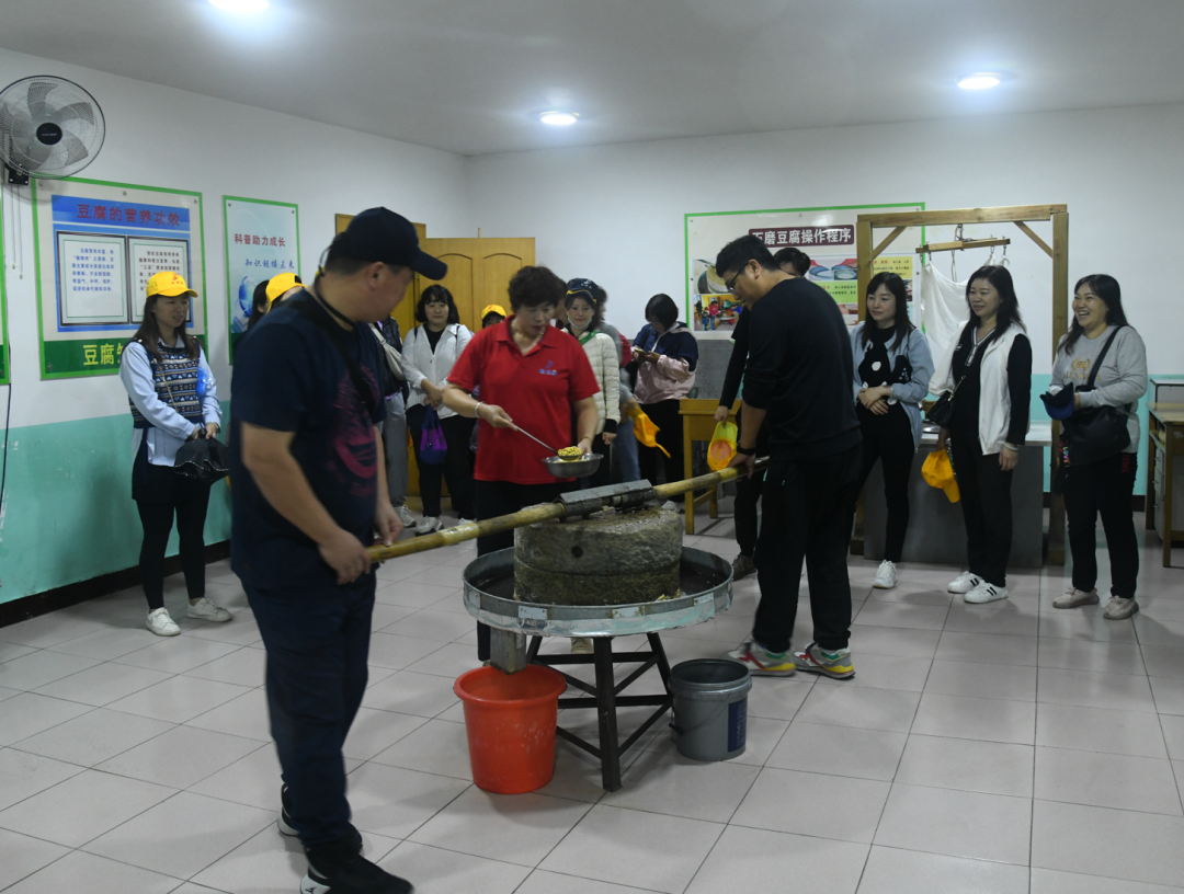 激烈的对抗活动在大家共同努力中顺利结束,社工们聚在一起学习制作豆腐和蛋糕。你转一圈我一圈,共同努力,快速完成~