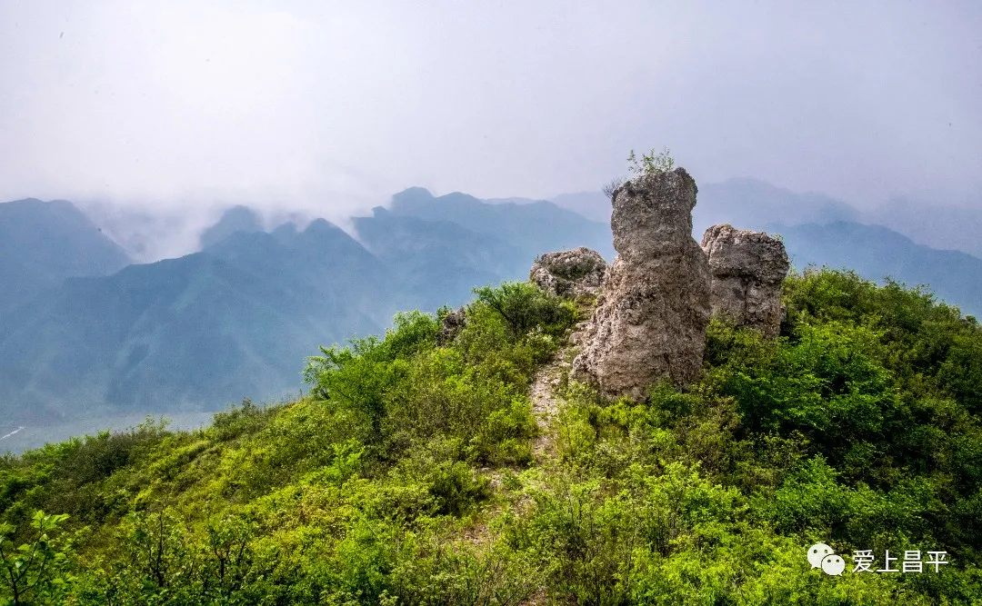从村口出来,顺着山路,一路向上往东走,就是寄水坨,栓马桩方向了,一路顺着龙脊攀爬,两旁景色眼底尽收,别贪恋身边景色,再向上就可以看到由三个自然形成的圆形石橛子被村里人称作拴马桩。