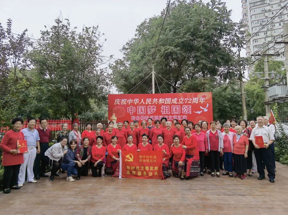 联欢会上,一首首《我的祖国》《我爱你,中国》《祝福祖国》《中国·中国·鲜红的太阳永不落》经典歌曲,充分表达出和平街居民对祖国的热爱和美好祝愿。