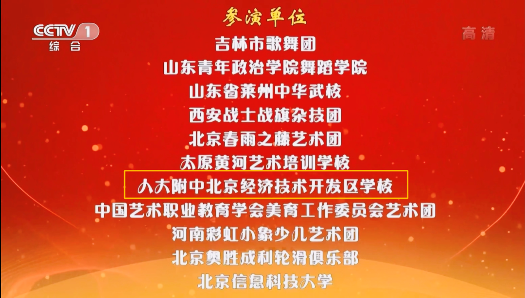 这是一次展示,也是一次锻炼,人大附中经开学校的孩子们登上了全国最大的舞台,为全国观众献上精彩舞蹈,献礼祖国生日,让我们一起为他们点赞。