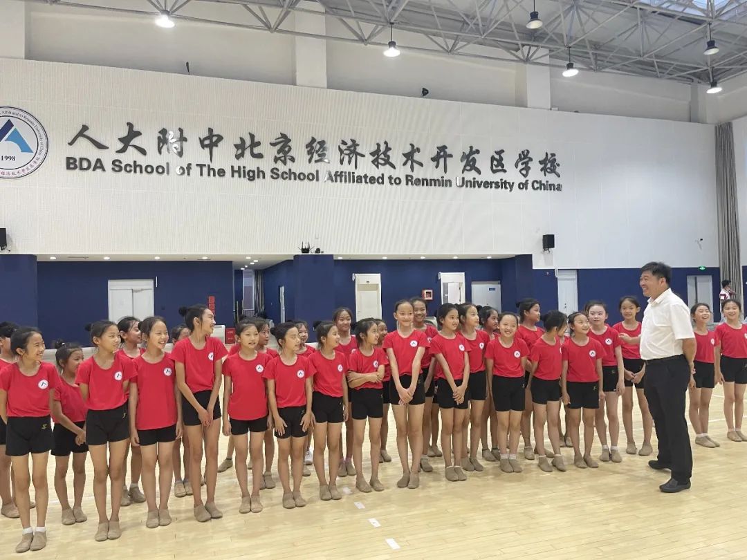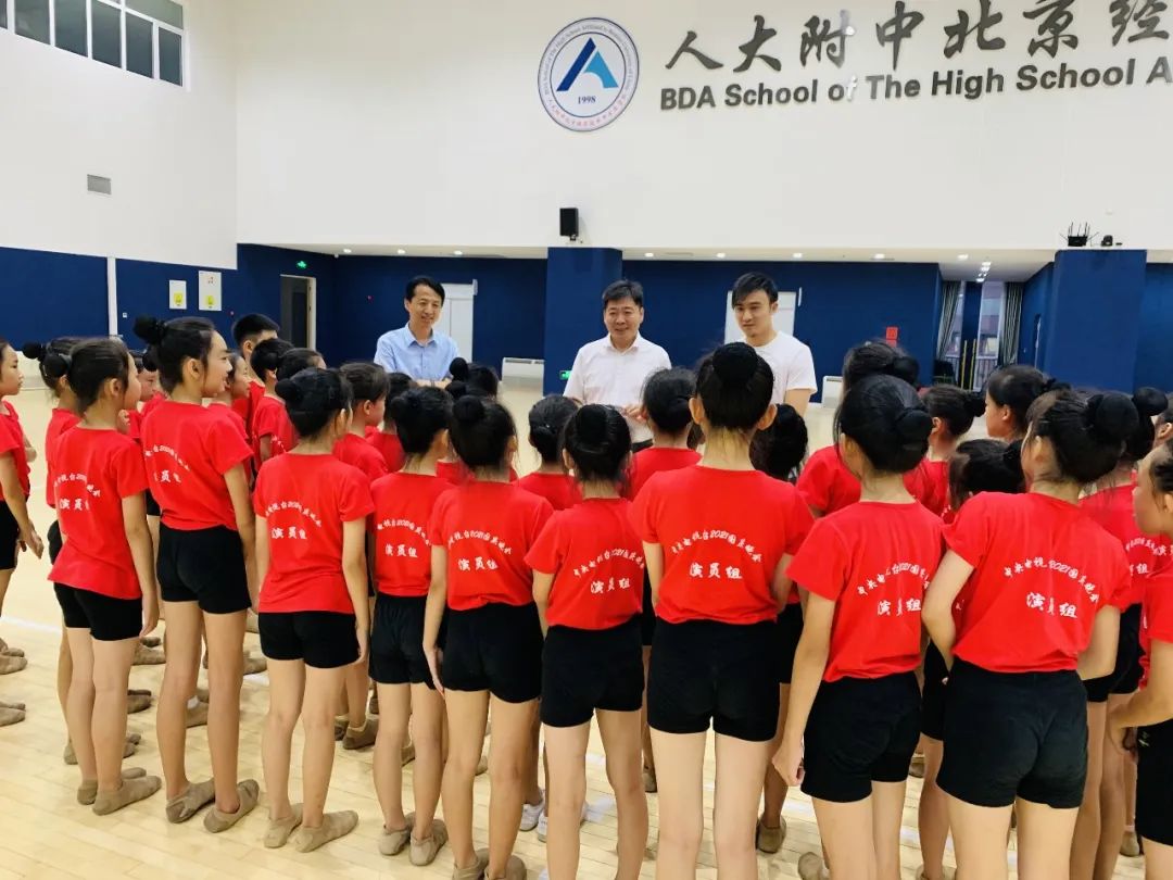 经过近两个月的辛苦排练,孩子们的舞蹈已经有模有样了。国庆前夕,大家赶往央视大厂影视基地进行节目的录制。临出发的前一天,人大附中经开学校校长王教凯来到排练厅看望孩子们,他关切地询问孩子们的作业情况和排练是否辛苦,得知孩子们的作业没有负担,且大家都热爱练舞后,他十分欣慰。