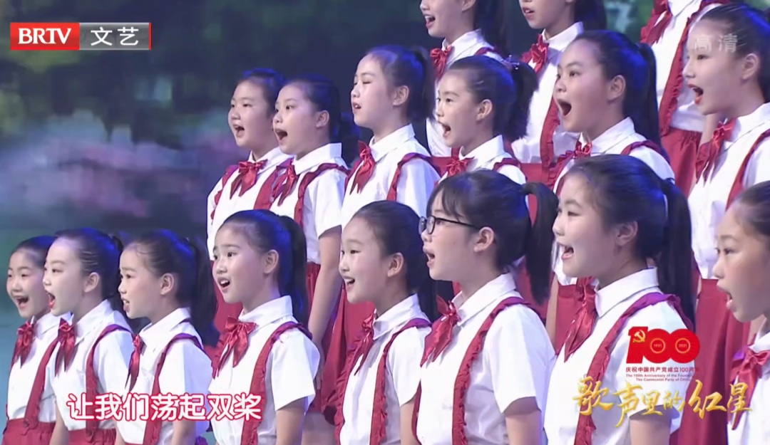 人大附中经开学校的孩子们清澈、响亮的童声响彻演播大厅,纯真、可爱的表演惊艳了整个舞台。此次高质量的节目录制展现出学校学子一心向党、昂扬向上的精神风貌,既是听党话、跟党走的实际行动,也再次展现了学校艺术教育的成果。