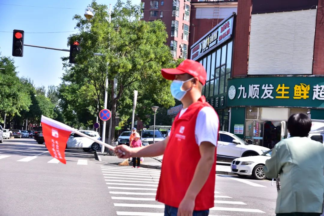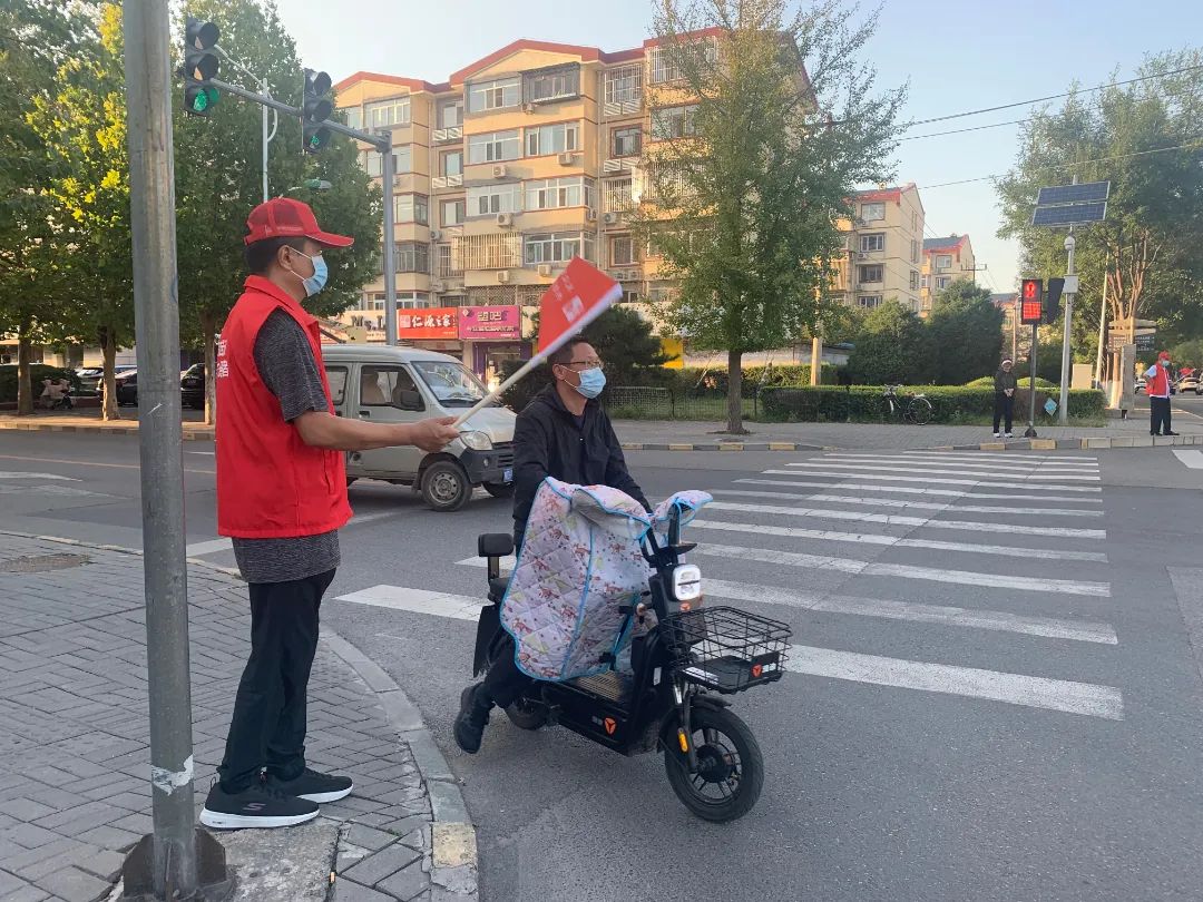 在早晚高峰期间,“光明热心人”们身穿红马甲、头戴小红帽、手拿引导旗,积极投身到志愿行动中,耐心劝导行人、车辆遵守交规,以实际行动为城市增添文明色彩。