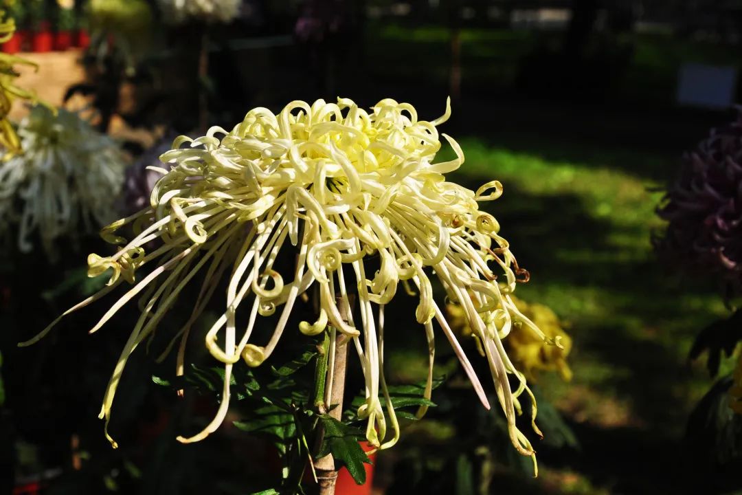 您可在月季园内的精品独本菊展区一睹它的芳容。预计花期可持续到本月底。