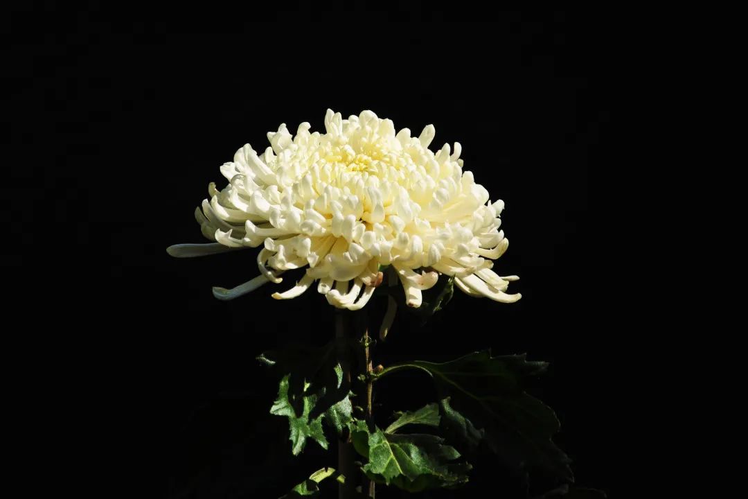 在观赏期的独本菊,株体端正、茎直立,节间分布均匀。叶色正,叶片舒展而有光泽,脚叶完整,是具有独特观赏性的菊花。