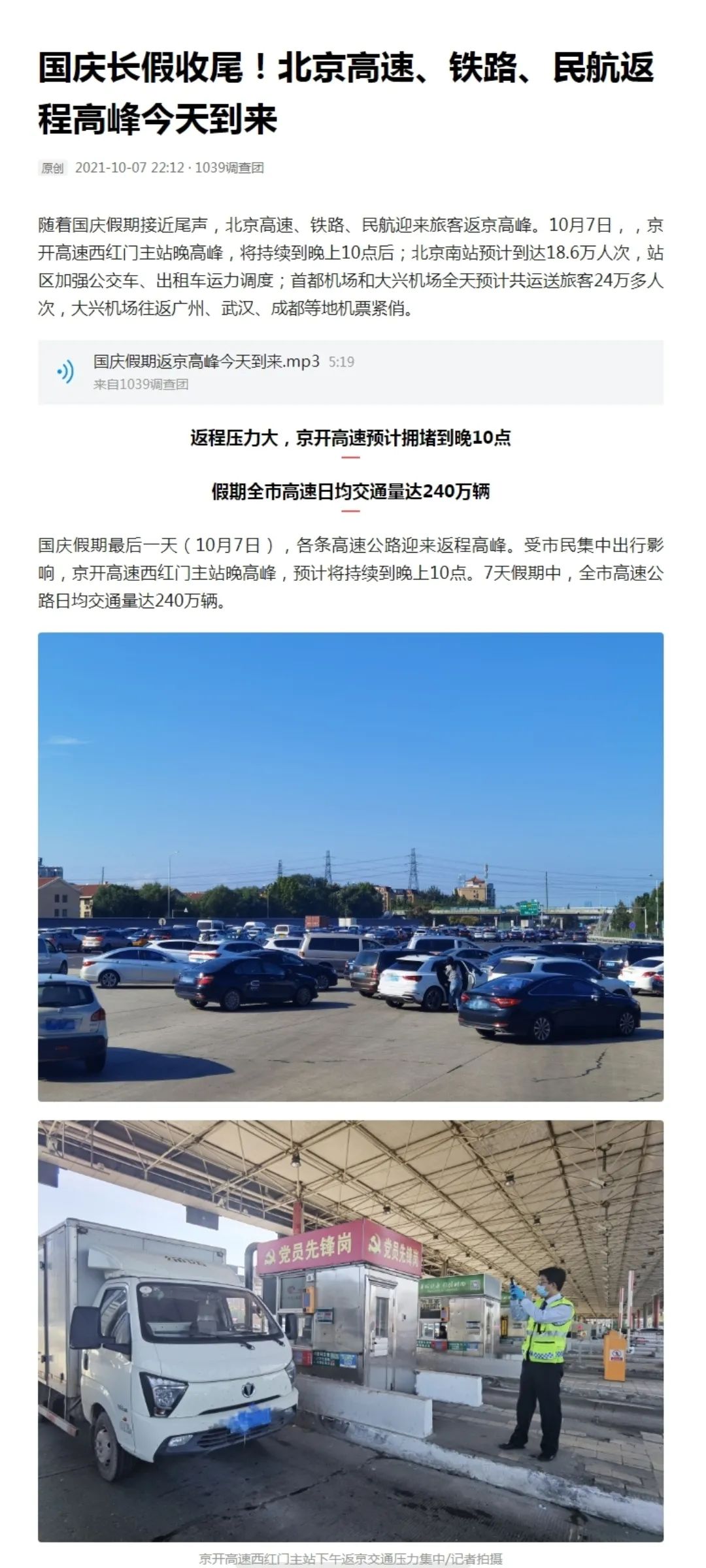 现场直击北京高速、铁路、民航出行高峰