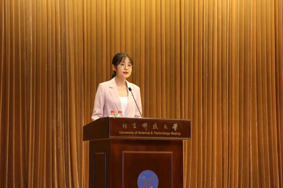 冶金与生态工程学院罗乙娲代表新教职工发言并带领全体新教职工庄严宣读入职誓词。新教职工们承诺“将以‘科技兴邦’为使命,继承北京科技大学‘学风严谨、崇尚实践’优良传统,熔铸‘求实鼎新’精神品质,为学校发展贡献力量!”机械工程学院新教职工陈小旺发起了“防疫有我,爱卫同行”的爱国卫生运动倡议。