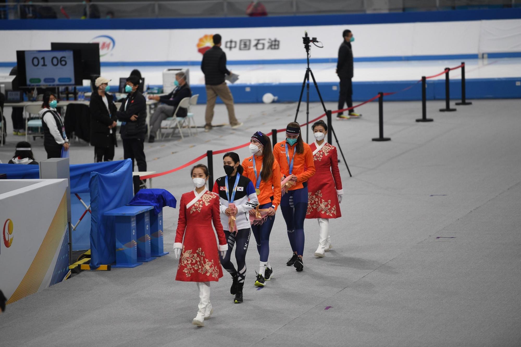 受疫情影响,本次比赛分为“闭环内”“闭环外”两个圈层,确保实现分区不重叠、流线不交叉、边界须严管,人员不跨区。在比赛前,运动员乘坐大巴直接进入场馆,避免与外界接触。除比赛场地外,运动员冰场外活动区则仅限更衣室、力量房、热身区和休息室。