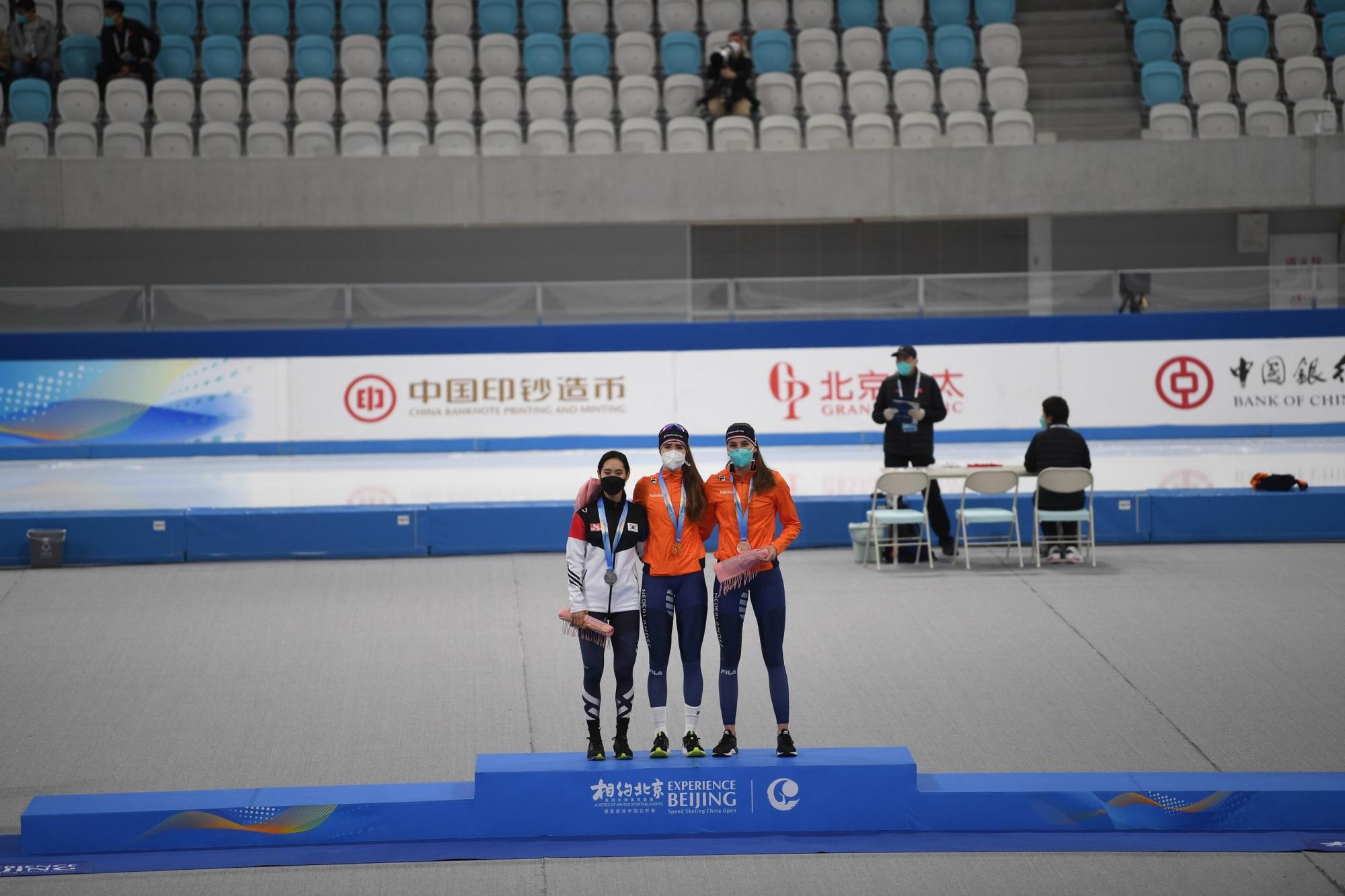 荷兰队与韩国队各有5名和4名选手参加了女子1000米的比赛,最终荷兰队的格雷维特以1分17秒89获得冠军,另一名荷兰选手莱昂妮·巴特斯获得季军,亚军则被韩国选手金贤荣收入囊中。男子1000米的比赛非常激烈,韩国选手最终包揽冠亚军,郑善教以1分11秒46的成绩获得冠军,金俊昊以0.15秒之差位列第二,荷兰选手韦恩耶斩获铜牌。与郑善教同在第4组出场的中国选手金亚男在出发后的第一个弯道出现失误,最终仅获得第8名。在随后进行的速度滑冰女子团体追逐与男子团体追逐项目中,只有荷兰队派出选手参加了比赛。