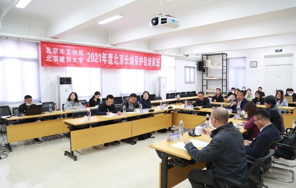 10月11日上午,由北京市文物局主办,北京未来城市设计高精尖创新中心、北京长城文化研究院、北京建筑大学国家文物局文博人才培训示范基地、北京建筑大学建筑与城市规划学院共同承办的2021年度北京长城保护员培训班在我校举行开班仪式。北京建筑大学党委副书记、校长张大玉,北京市文物局副局长凌明,北京长城文化研究院常务副院长汤羽扬,北京市文物局遗产处处长范军,北京建筑大学科学发展研究院常务副院长李雪华等相关领导出席了本次开班仪式。来自北京长城沿线6区的约500名学员通过线上方式参加。会议由国家文物局文博人才培训示范基地负责人,建筑学院朱宇华副教授主持。