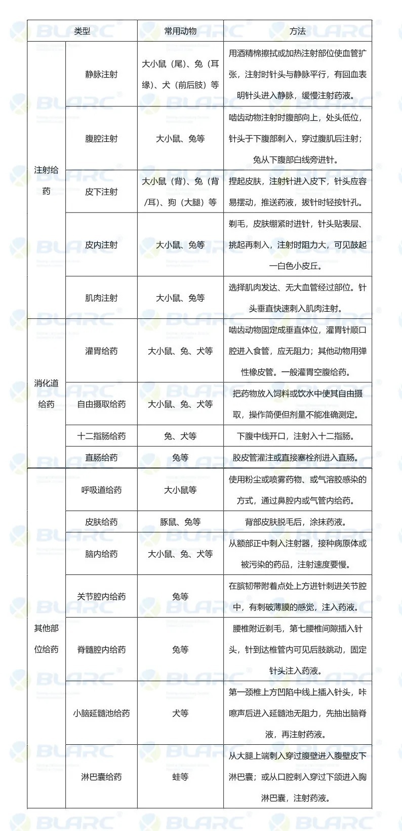 给药途径常根据动物种类、实验目的、药物的性质和剂型决定。