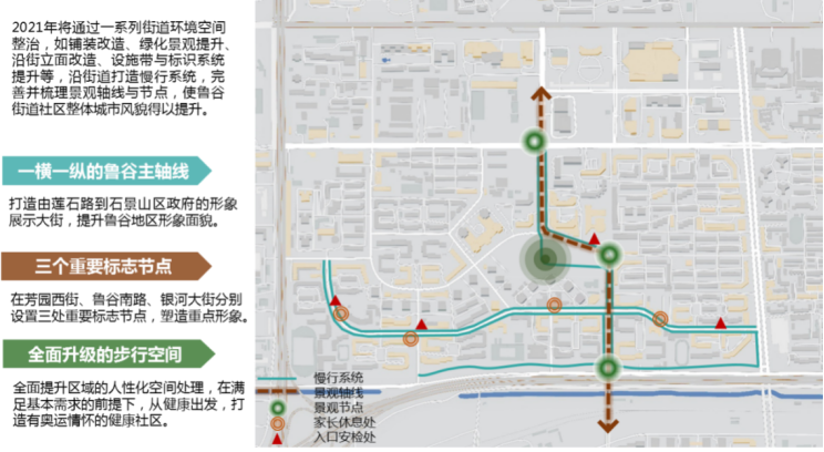 依据市级、区级要求和工作安排,责师团队与属地街道将鲁谷北部公共空间提升作为未来工作重点,研究提升战略,使街道公共空间的使用效能、环境整体提升,成为富有温度的城市公共空间。
