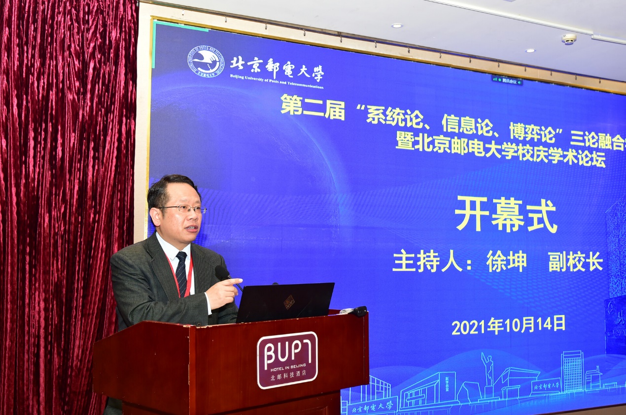 10月14日上午,第二届“系统论、信息论、博弈论”三论融合学术会议暨北京邮电大学校庆学术论坛在北京邮电大学开幕。来自全国各地的专家学者参加了此次会议。北京邮电大学副校长徐坤教授主持开幕式。