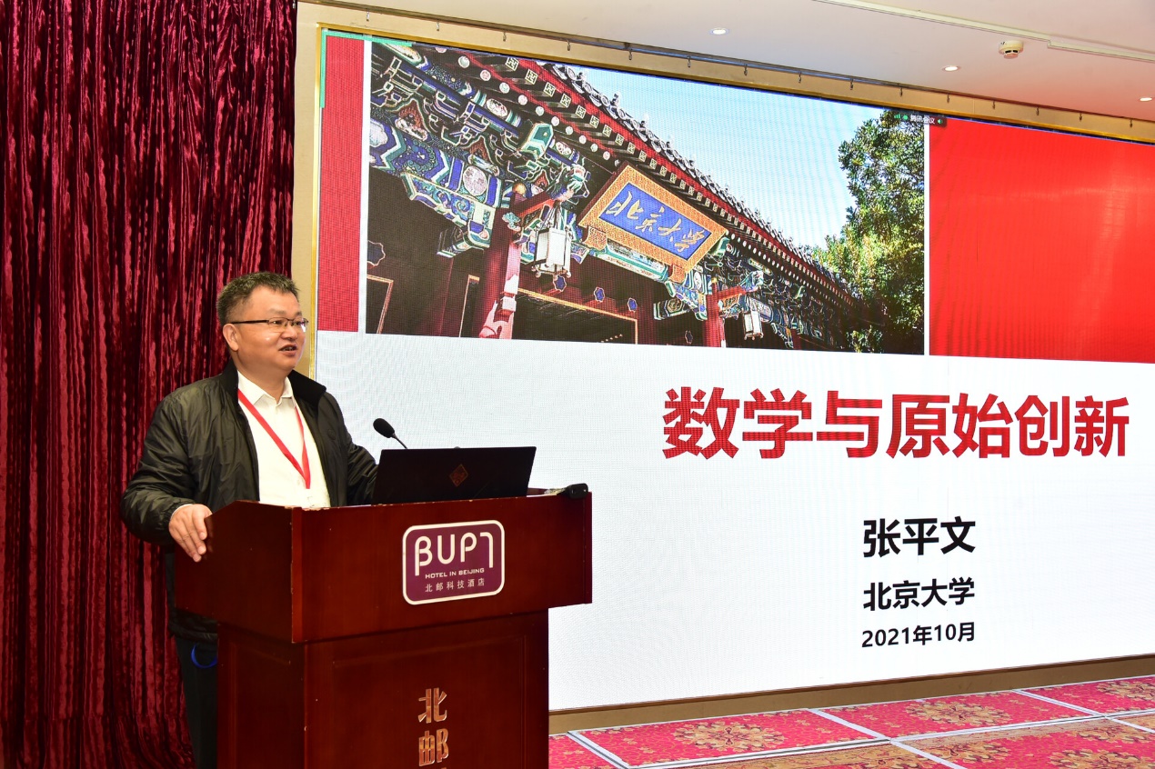 开幕式后,中国工业与应用数学学会理事长、中国科学院院士、北京大学副校长张平文教授以《数学与原始创新》为题讲述了系统论、信息论与博弈论的发展创新与数学的密切关系。