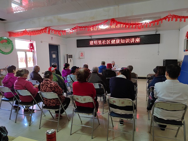 建明里社区联合燕龙医院,共同开展“情暖金秋 爱在重阳”关爱老年人健康的知识讲座和义诊活动,为老人送健康。图文/孙丽萍