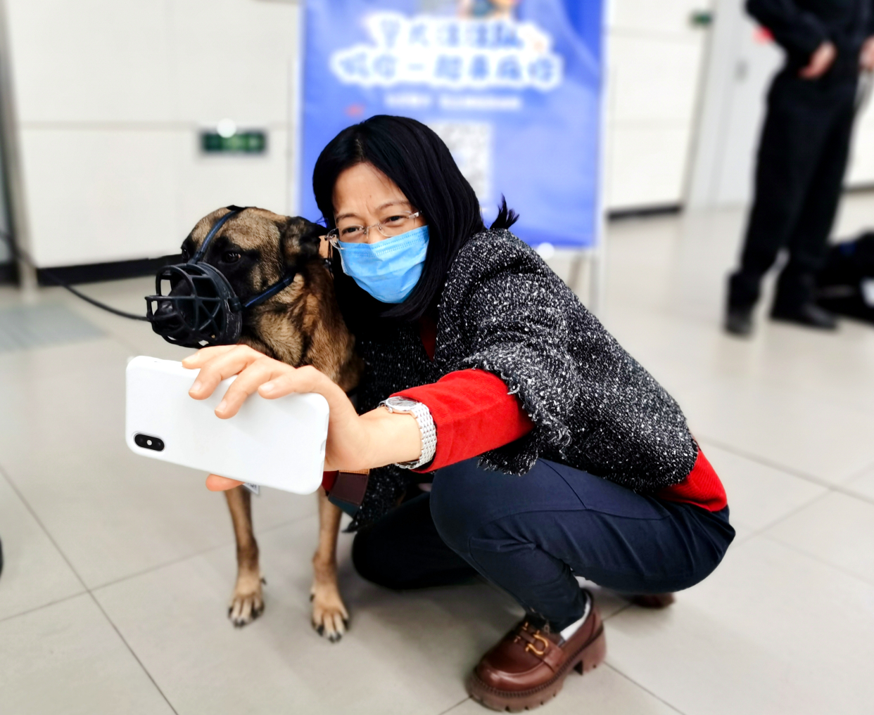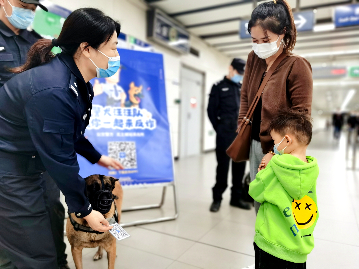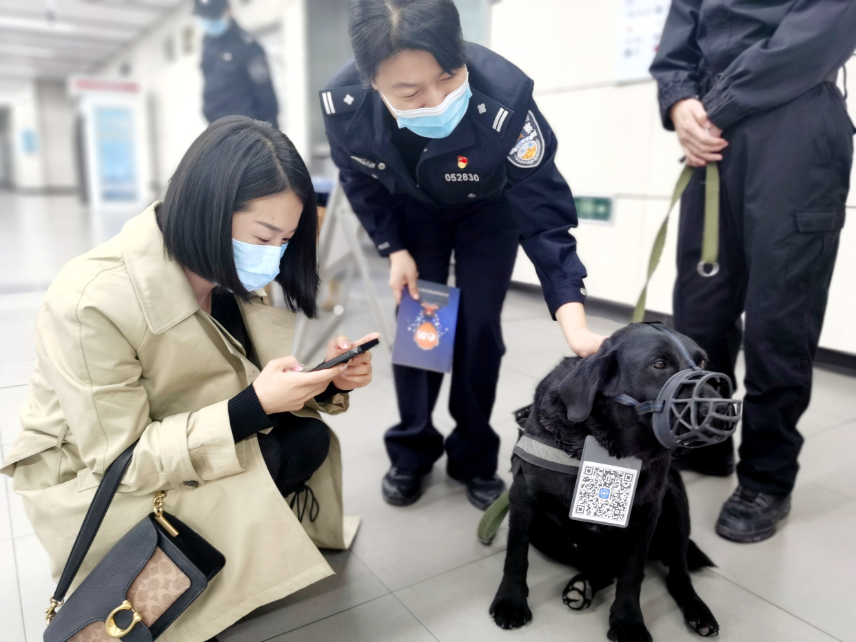 为从源头上防范和打击电信网络诈骗,提高群众防范意识和能力,10月15日,在“国家网络安全宣传周”到来之际,北京市公安局公交总队北土城站派出所在地铁10号线安贞门站开展了反诈宣传主题活动,警犬多多和锤子在胸前挂起“国家反诈中心”APP二维码,兼职当起了反诈宣传员,乘客只要扫码下载APP,就可以与警犬近距离开展互动。