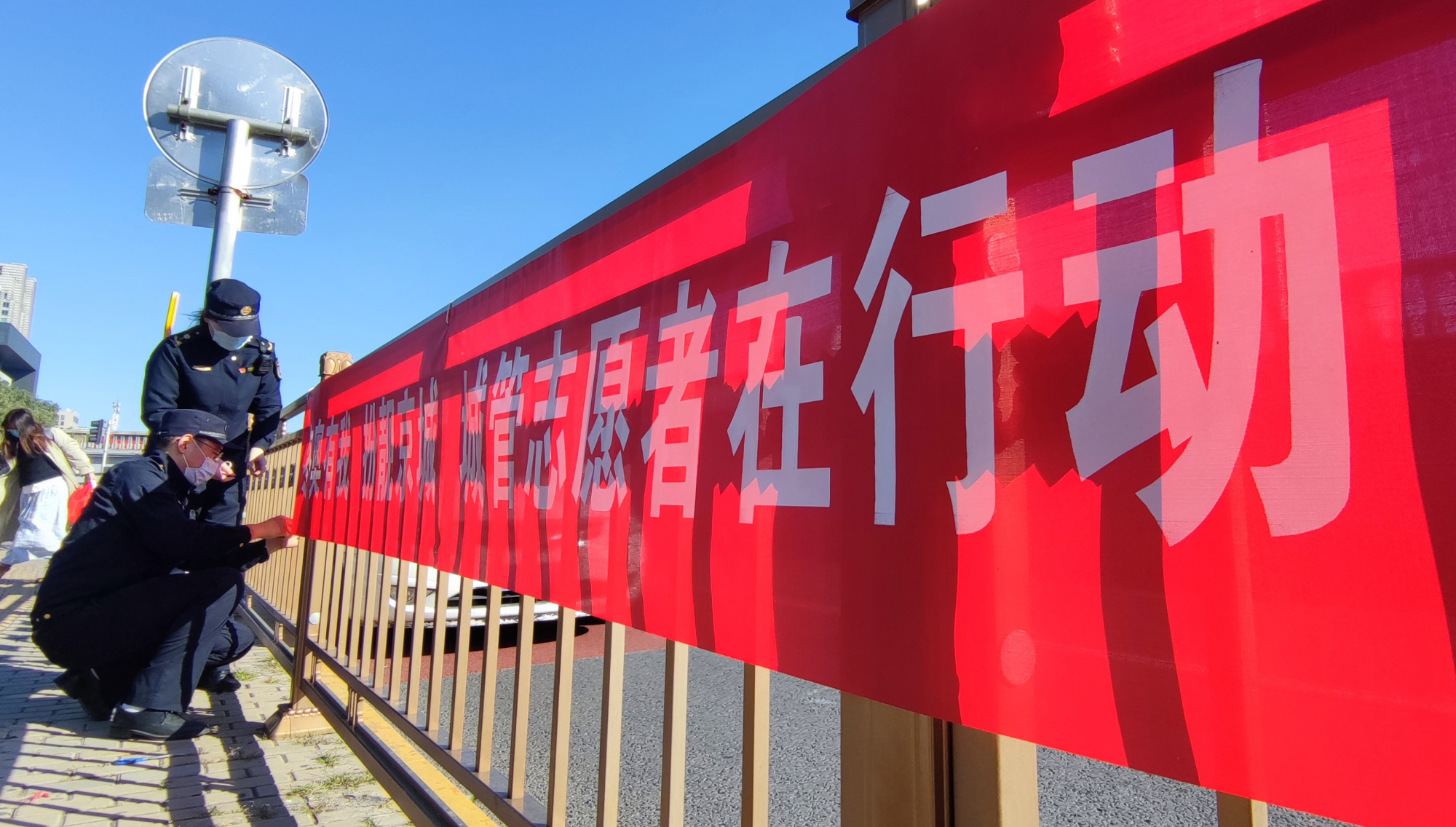 10月17日,13名来自社会不同行业的志愿者来到东城区建国门地铁C口,参加东城城管执法局志愿团队的志愿服务活动。