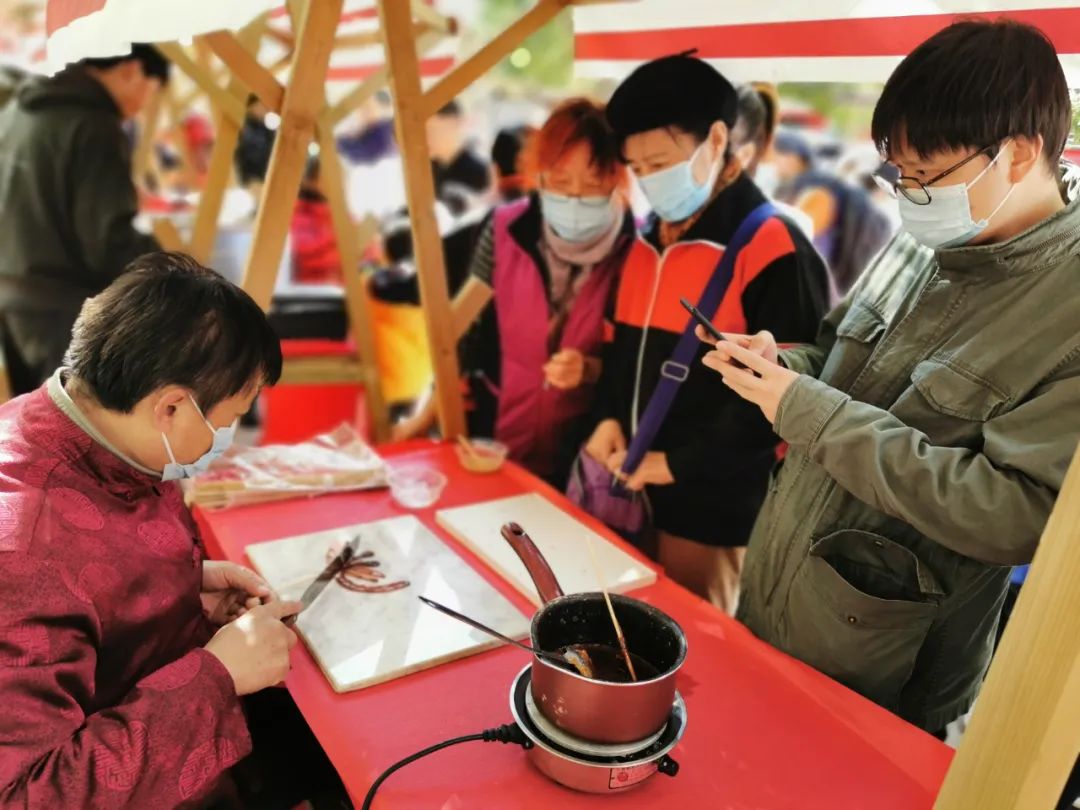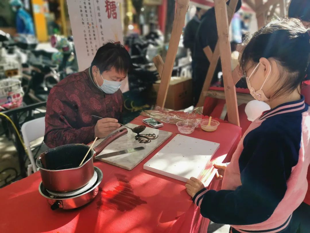 荣华街道则将上海沙龙北门步行街打造为“特色民俗体验街区”,将变脸、糖画、棉花糖、面人、活字印刷、剪纸、中国结等众多体验项目汇聚一堂,并融入了旱地冰壶等冬奥体验项目,为居民们打造了家门口的“趣玩地”。