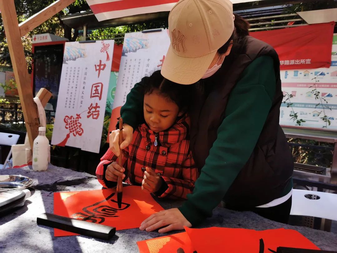 多彩的特色民俗活动不仅吸引居民前来参与,也得到国外小朋友的青睐,来自加拿大的混血女孩安安就是一位。现场,她开心地对小亦说:“今天我吃到了棉花糖,还体验了写毛笔字,非常开心,中国文化真是太有意思、太有魅力了,我爱中国!”