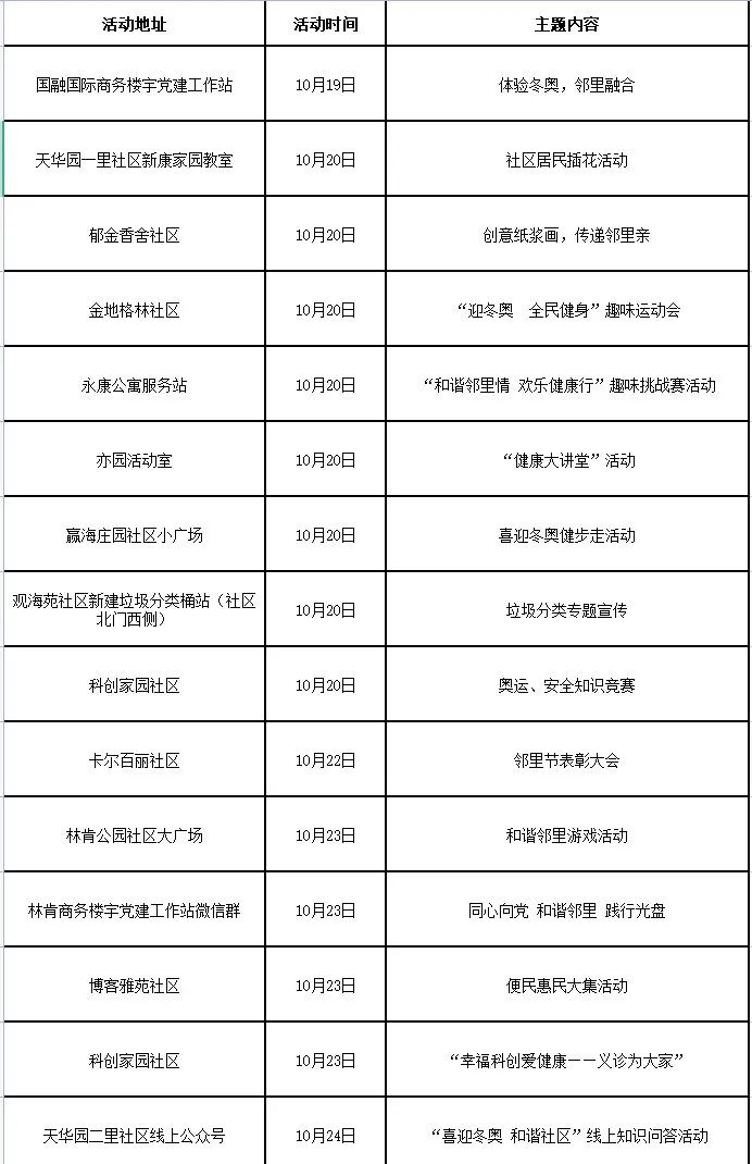 北京经开区第三届“社区邻里节”剩余场次活动安排表(点击查看大图)