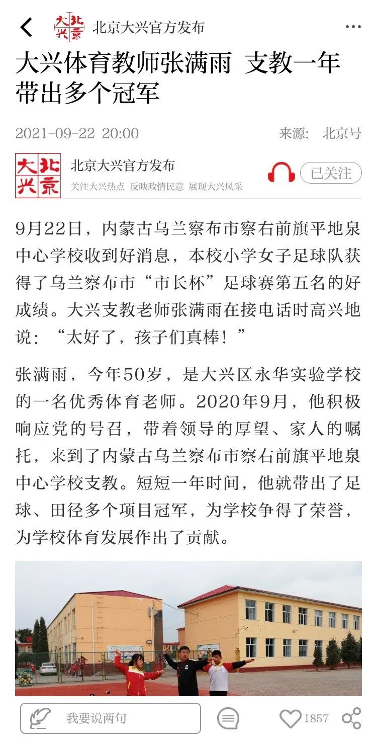 其中,《营业了!大兴这处闲置锅炉房完成“整容式”改造》《大兴体育教师张满雨,支教一年带出多个冠军》《王有国同志任中共北京市大兴区委员会书记》《绝美!震撼!感动!看摄影师眼中的新大兴》4篇稿件入选三季度月度热文榜。