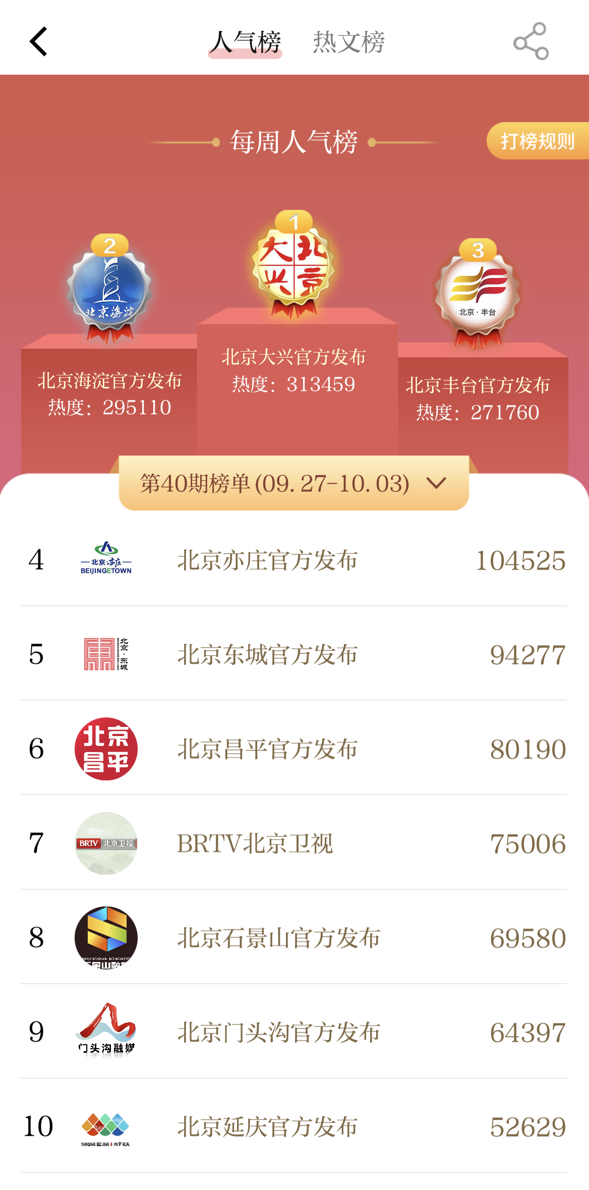 喜迎中秋、国庆双节,宣传工作再创新高,9.20-10.3连续两周稳居每周人气榜第一。