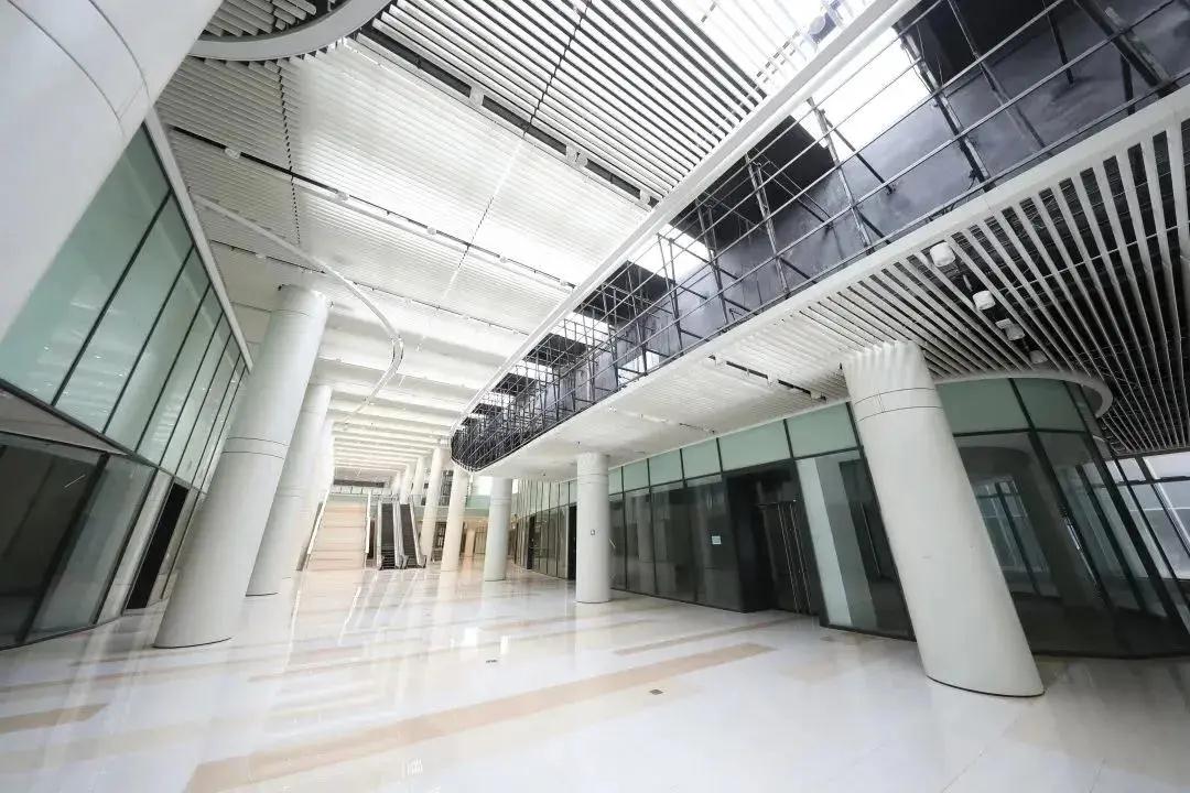 与居住区不同,这里没有高楼林立,而是一个下沉式广场。走进广场区内部,可以看到很有纵深感的长廊和极具设计感的观景梯,柔和的灯光与洁净的地面相映衬,走在其中,感觉格外敞亮而惬意。