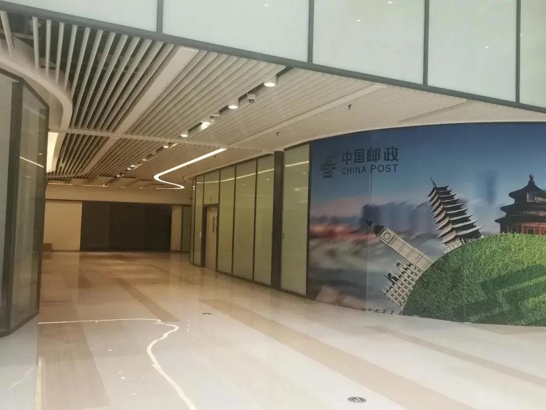再往里走,每个空间的玻璃门上都贴上了示意图,如咖啡厅、邮局、银行等,部分空间已经在进行内部的二次装修和设施布置。广场区功能空间多种多样,涉及餐饮娱乐、商业服务、文化体验等多项内容,是运动员和随队官员交流互动的主要区域。尤其在疫情防控闭环管理的情况下,这里将作为运动员娱乐、休闲、购物的重要场所。