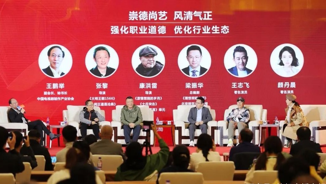 深入学习开展文娱领域综合治理的重大意义,身体力行共同营造风清气正的文艺生态成为业界共识。本次论坛由中国电视剧制作产业协会副会长兼秘书长王鹏举主持,中国广播电视社会组织联合会副会长李京盛,人民日报文艺部主任袁新文,北京师范大学文化创新与传播研究院副院长杨越明,爱奇艺高级副总裁戴莹,东阳正午阳光影视有限公司董事长侯鸿亮,《人间正道是沧桑》导演张黎,《激情燃烧的岁月》《士兵突击》导演康洪雷,《理想照耀中国》总编剧梁振华,著名演员王志飞,著名演员颜丹晨在主题沙龙环节结合各自工作领域展开讨论。