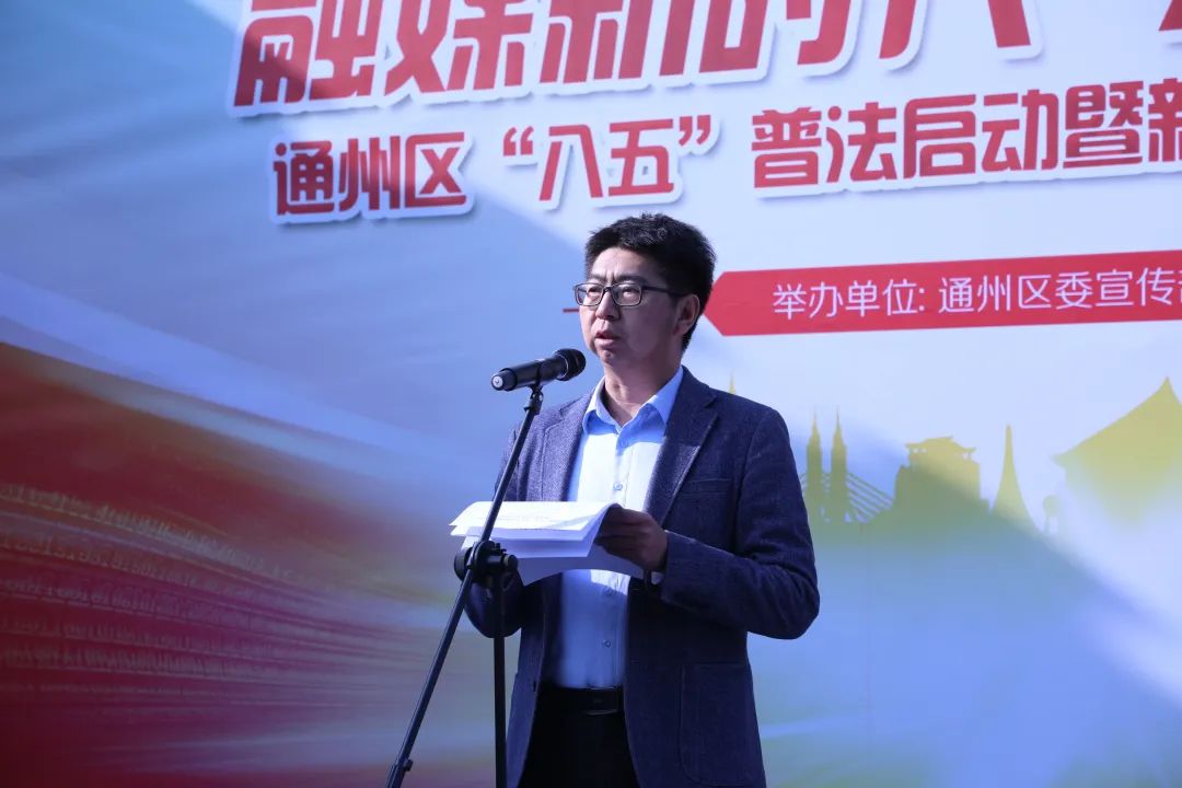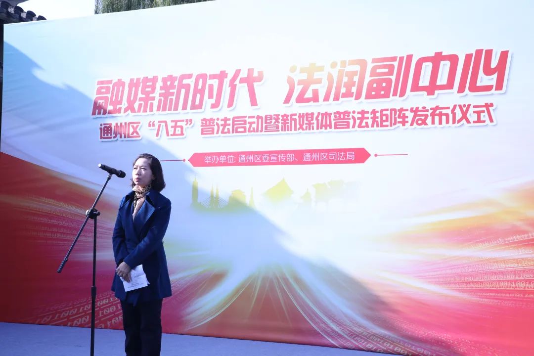 通州区委依法治区委员会守法普法协调小组副组长、区司法局局长张琴琴致辞表示,回顾过去五年,通州区全面落实“七五”普法规划,副中心法治宣传教育事业取得了跨越式前进和高质量发展。展望“八五”普法愿景,要紧紧围绕中心任务推动新发展,推动法治宣传教育工作出特色、出亮点、出品牌,写好法治宣传教育体制机制建设、普法依法治理、法治文化建设“三篇大文章”。