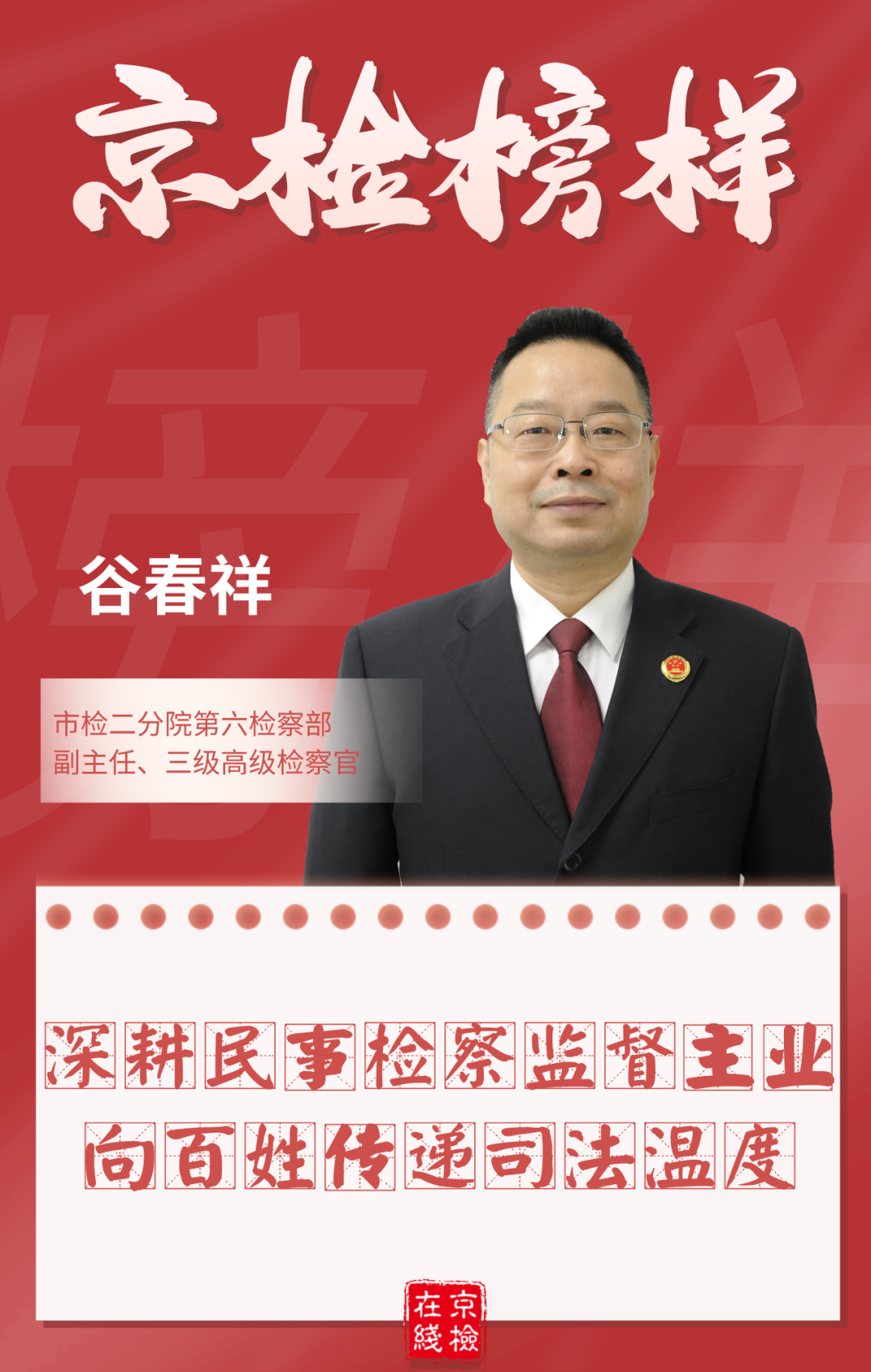 本期“京检榜样”推出的是市检二分院第六检察部副主任,三级高级检察官谷春祥的先进事迹。