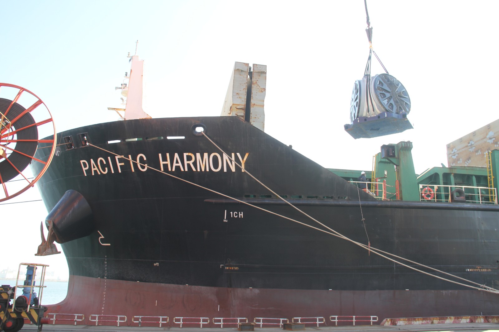 近日,随着“太平洋和谐”轮从天津港离泊驶向哥伦比亚,天津港临港港务集团有限公司优质高效完成维斯塔斯6MW风电设备全国首次出口作业任务,包括该设备涵盖的35件风电机舱、38件轮毂、13件齿轮箱装船作业,进一步巩固了天津港作为我国北方最大风电设备出口基地的地位。