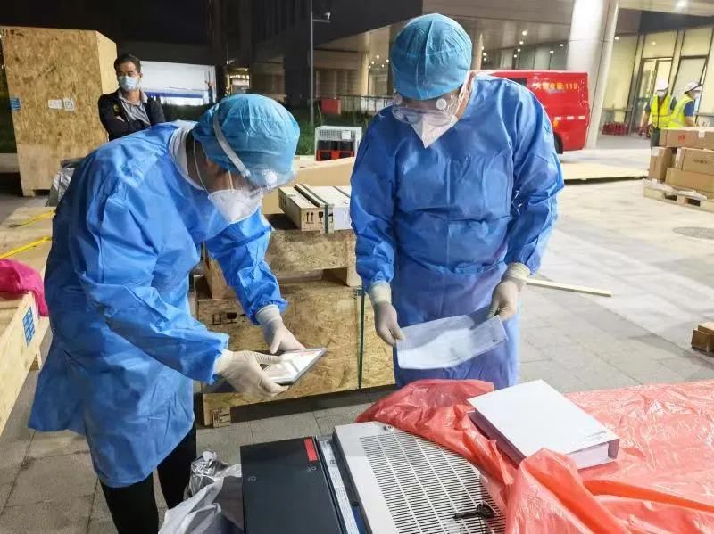 △北京海关所属亦庄海关关员凌晨来到同仁医院亦庄院区,对临床急需的进口医疗器械进行上门查验。