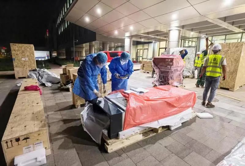 深夜,徐驰一边提醒查验关员做好准备,一边和院方及设备安装人员反复沟通具体流程,制定了“边开箱、边查验、边安装”的工作方案。凌晨1点不到,亦庄海关查验关员就已经到达院区,准备就绪。半小时后,货物运抵。经过现场关员近两个小时的紧张细致工作,这批共15箱、总重5吨多的进口血管造影X射线机顺利完成海关查验。望着这批设备陆续被运进造影室,开始安装调试,守在一旁的李思谦终于踏实了下来。