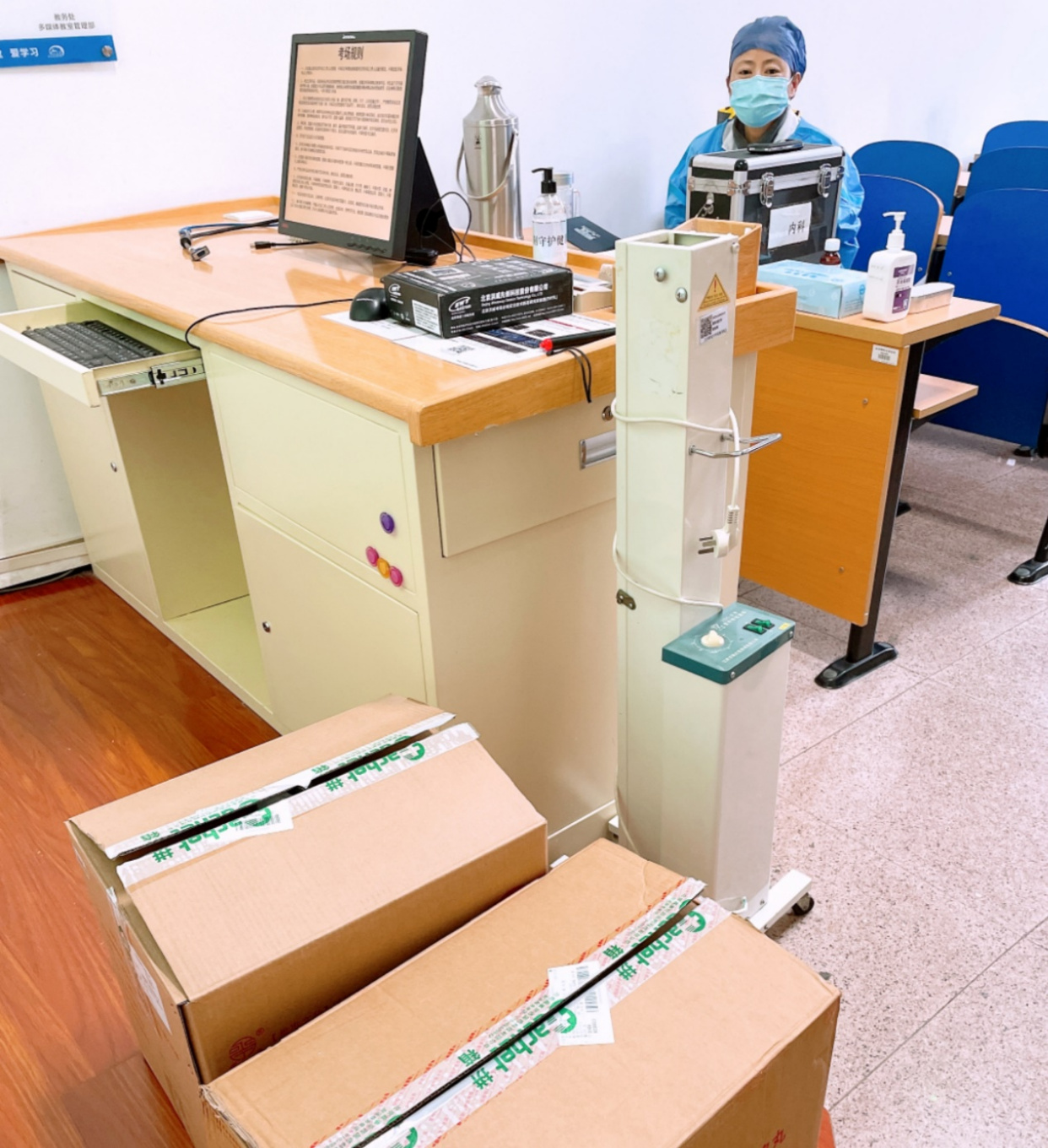 考场内设置防疫办公室,防疫副主考和医务人员全程值守。