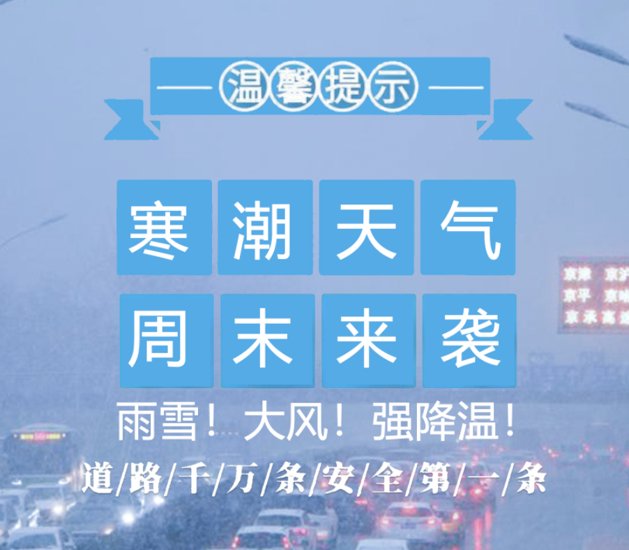 高速公路受雨、雪、低能见等不利因素影响,可能出现临时封路等情况。请大家尽量减少出行,外出时提前关注路况信息,注意防寒保暖,同时注意防滑和行车安全。