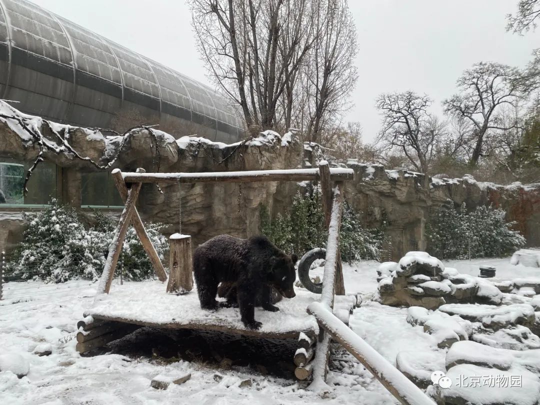 立冬的北京动物园银装素裹,朔风渐起,草木凋零,深秋的浓郁还未消尽,冬,已翩翩而至~