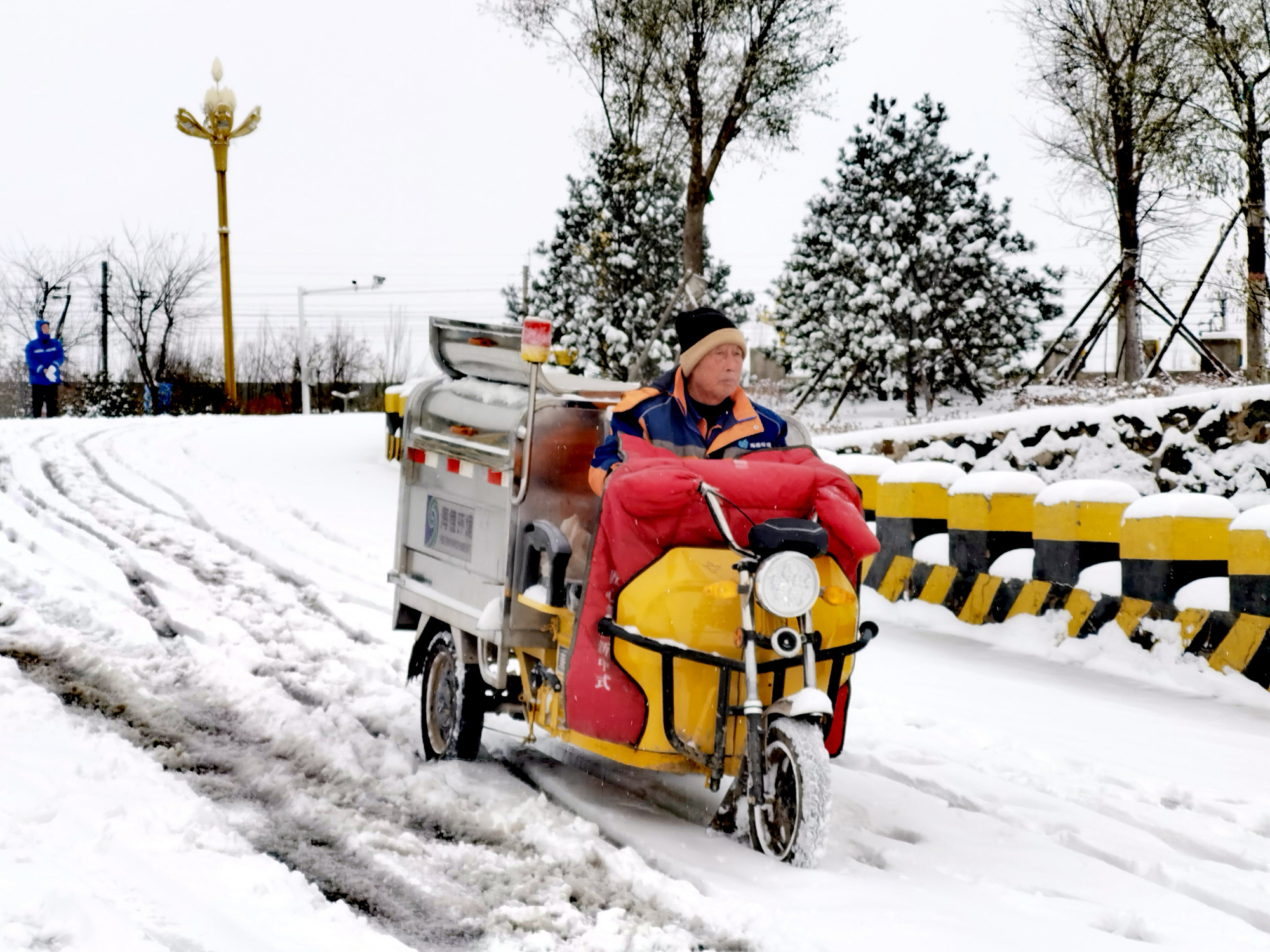 7日,立冬节气,河北省张家口市阳原县经历了2021年冬天的第一场强降雪,皑皑白雪覆盖了全城,风雪中交通、环卫、消防、机关党员干部、志愿者纷纷坚守在风雪中,清扫积冰积雪、指挥交通,为市民的安全出行保驾护航,确保正常的生产生活秩序。