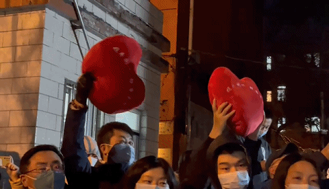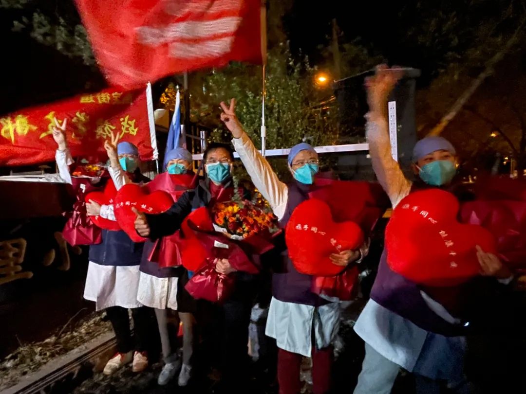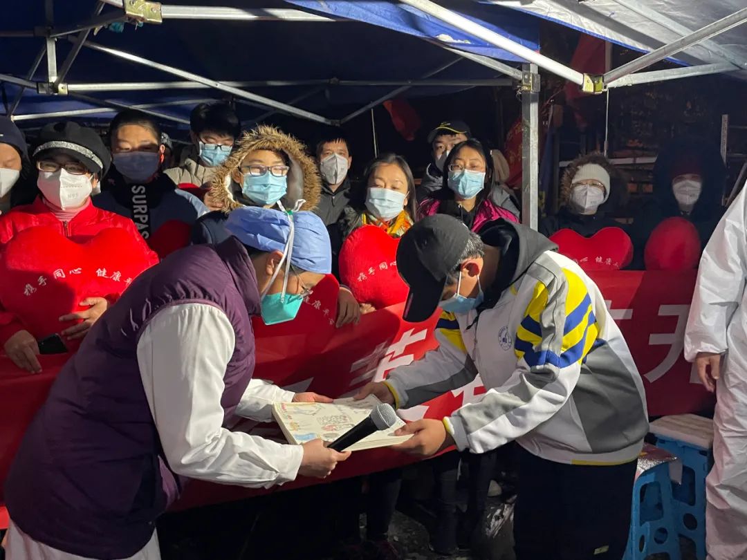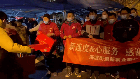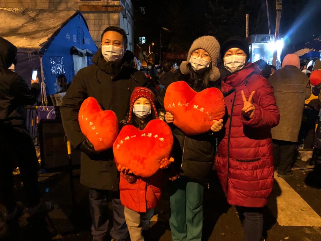 居民们手捧海淀街道准备的心形抱枕、条幅“守望相助共克时艰,冰雪立冬芙蓉花开”,边唱歌边走出社区,他们开心地鼓掌庆祝。解封现场“变身”一场大合唱,居民们的声音越来越大,连同路过的行人,见状也停下脚步,加入这场大合唱。