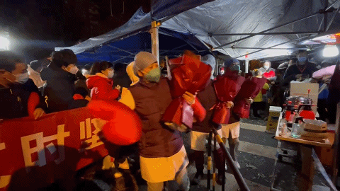志愿者肖千告诉记者,她从封闭开始就一直和同伴们在社区坚守。这两天降温,街道和社区准备了很多暖宝宝给志愿者,他们却都舍不得用,全都留给了更需要的人。今天,大风加上冰雪,冷的手都拿不出来,肖千和其他志愿者依然坚守岗位,一个一个的帮着即将进入社区的大白们,穿防护服,手早已冻得通红。
