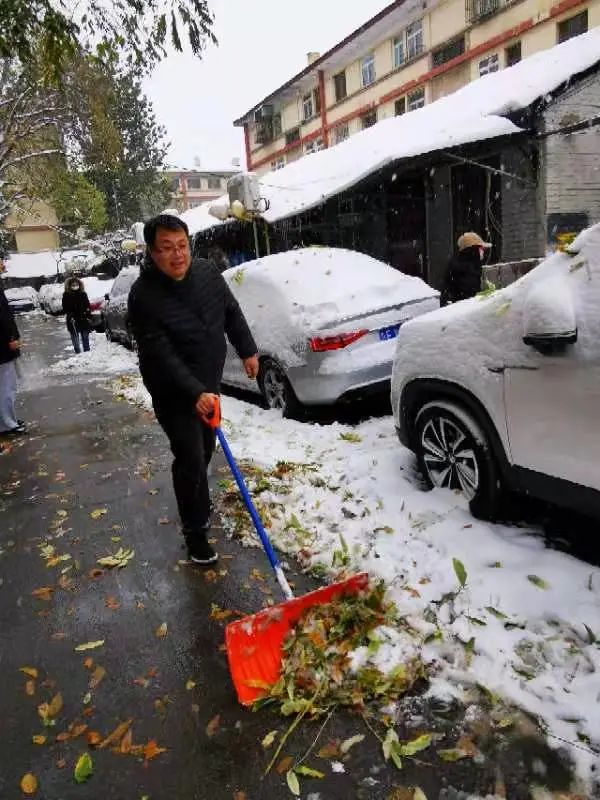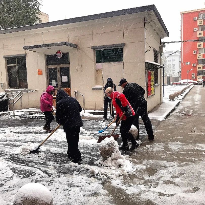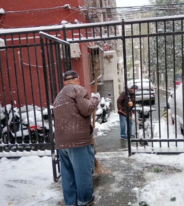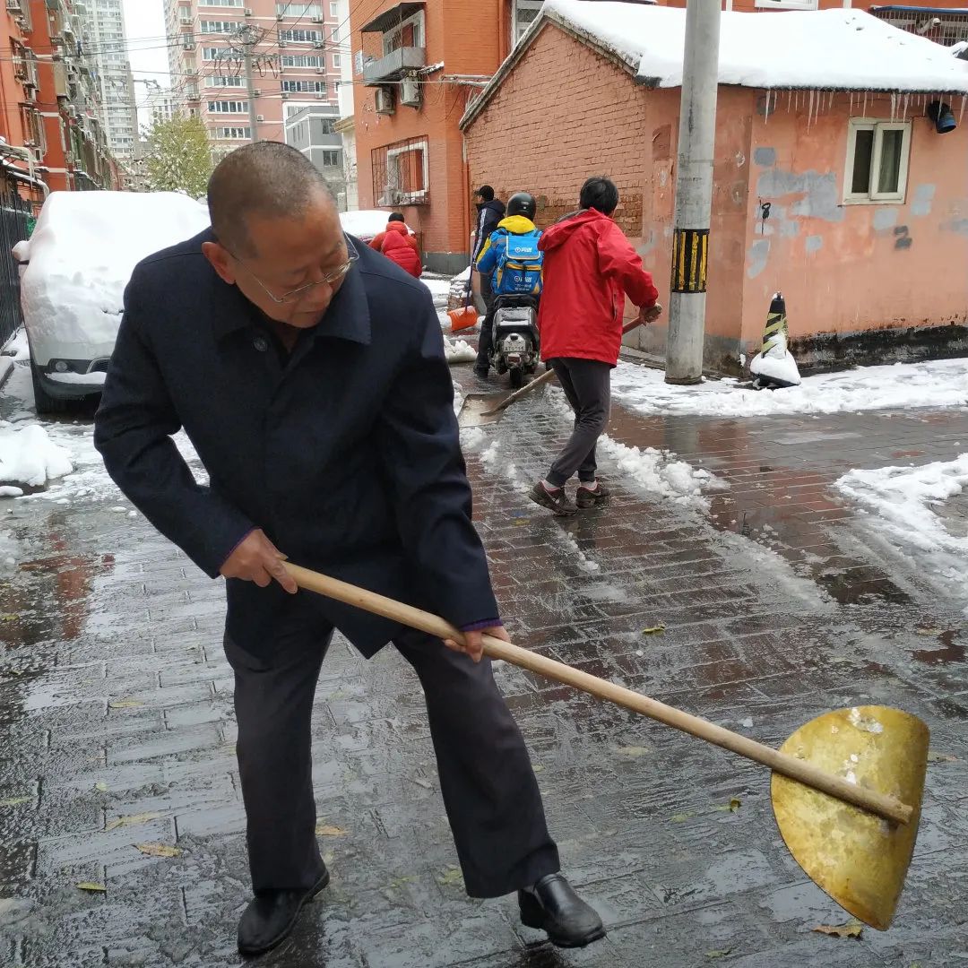 持续了夜的大雪将三里屯幸福二村社区装点得银装素裹,雪给大家带来了惊喜,也带来了出行的不便。为了保障社区居民的出行安全,幸福二村第一党支部楼院居民李金全清晨6点左右就主动清扫起甬道路面积雪,他默默的付出吸引来众多志愿者的加入,大家不畏寒冷、有序分工、配合默契,迅速将社区路面积雪清扫干净,并贴心的保留了公园的景观雪景,真正做到了精细化扫雪铲冰。