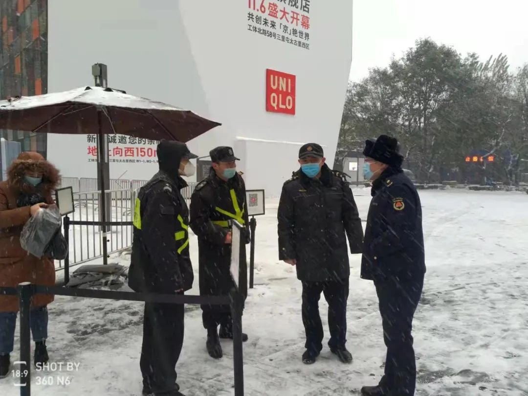 一张张冻得发红的脸、一双双冰凉的手、一个个披着雪花浸着寒气的背影,他们是三里屯的守护者,更是冬日里最温暖的阳光。