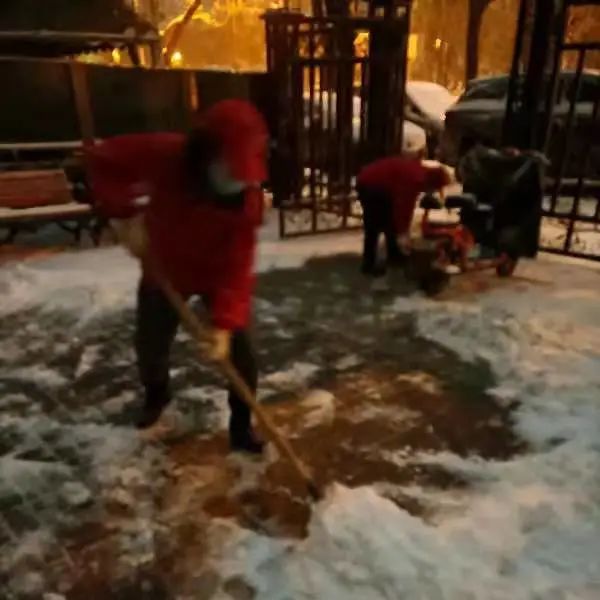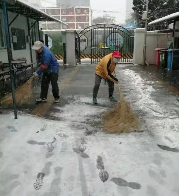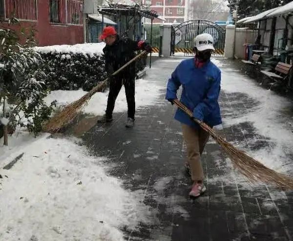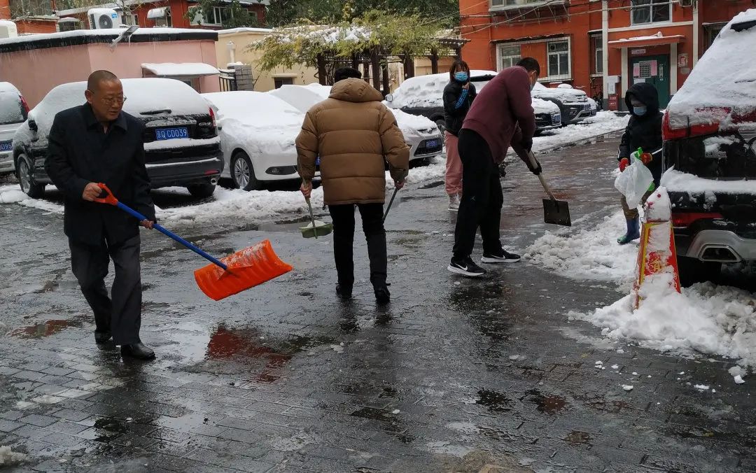 天气虽寒,却低挡不住大家扫雪的热情,北三里的社区工作者、志愿者深入辖区内各个小区,齐心协力,你铲我扫,热火朝天的劳动场面,让严寒的天气显得暖意浓浓,忙碌的身影构成一道亮丽的风景线。他们利用休息时间主动冒雪铲冰,只是为了让辖区居民出行更安全、更方便、更放心。