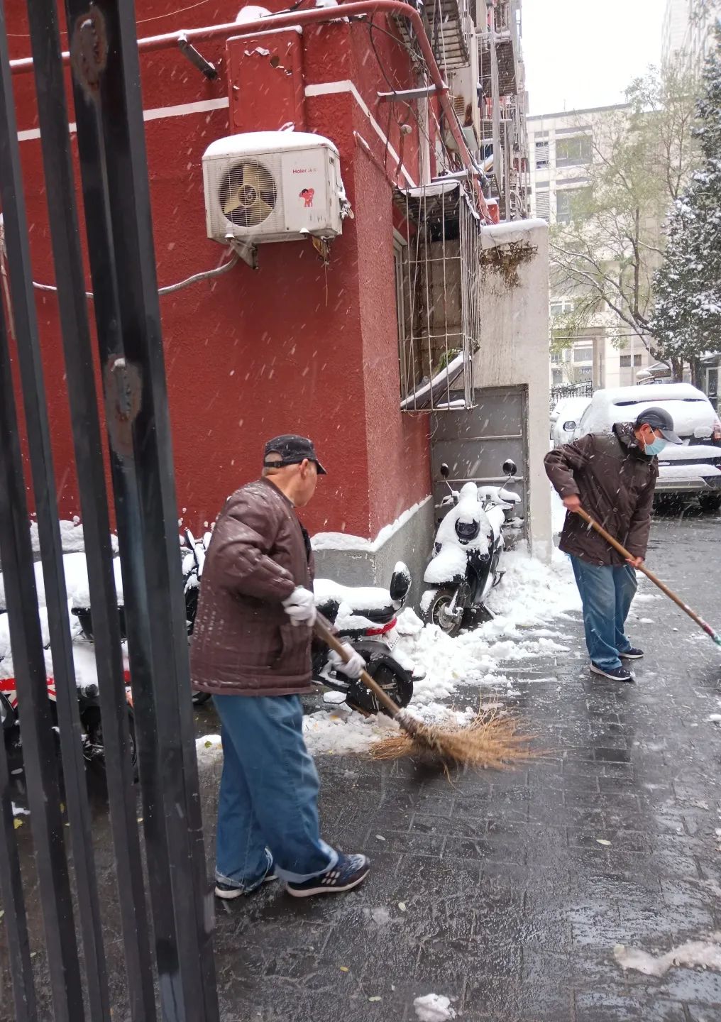 大雪掩不住的温情 扫雪铲冰进行时